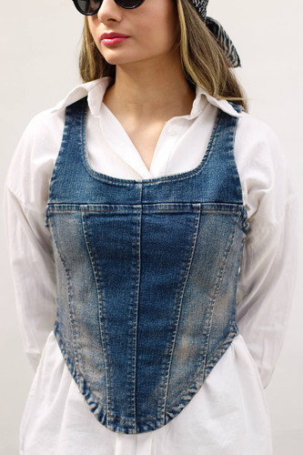 کت جین پشت گلدوزی کروم کد 7038